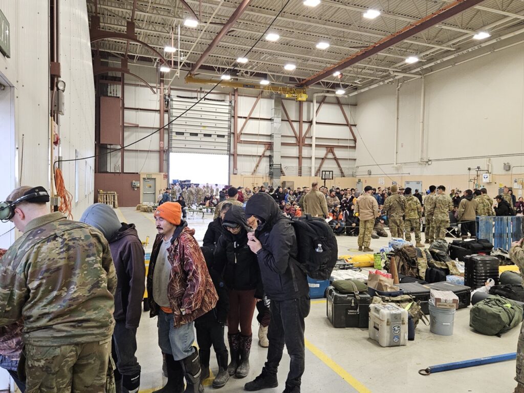 Those who did not get on the Wednesday evening flight were sheltering in Bethel, some in an emergency shelter across the road from the Readiness Center hanger, administered by the Yukon-Kuskokwim Health Corporation with the support from the American Red Cross. Cots, showers, and meals were provided there.