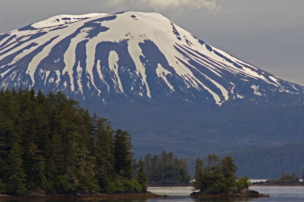 Nearby, an eagle atop a hemlock surveys its home with regal regard, and late-run chum salmon lumber up a creek. Twilight pinks the lake at the glacier’s toe, and the jagged mountain tree line reflects in the mirror-calm water.